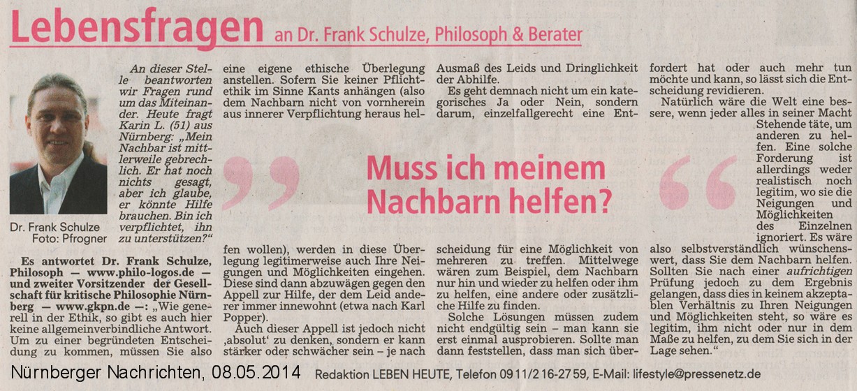 und somit Thema in der Philosophischen Praxis werden könnte.